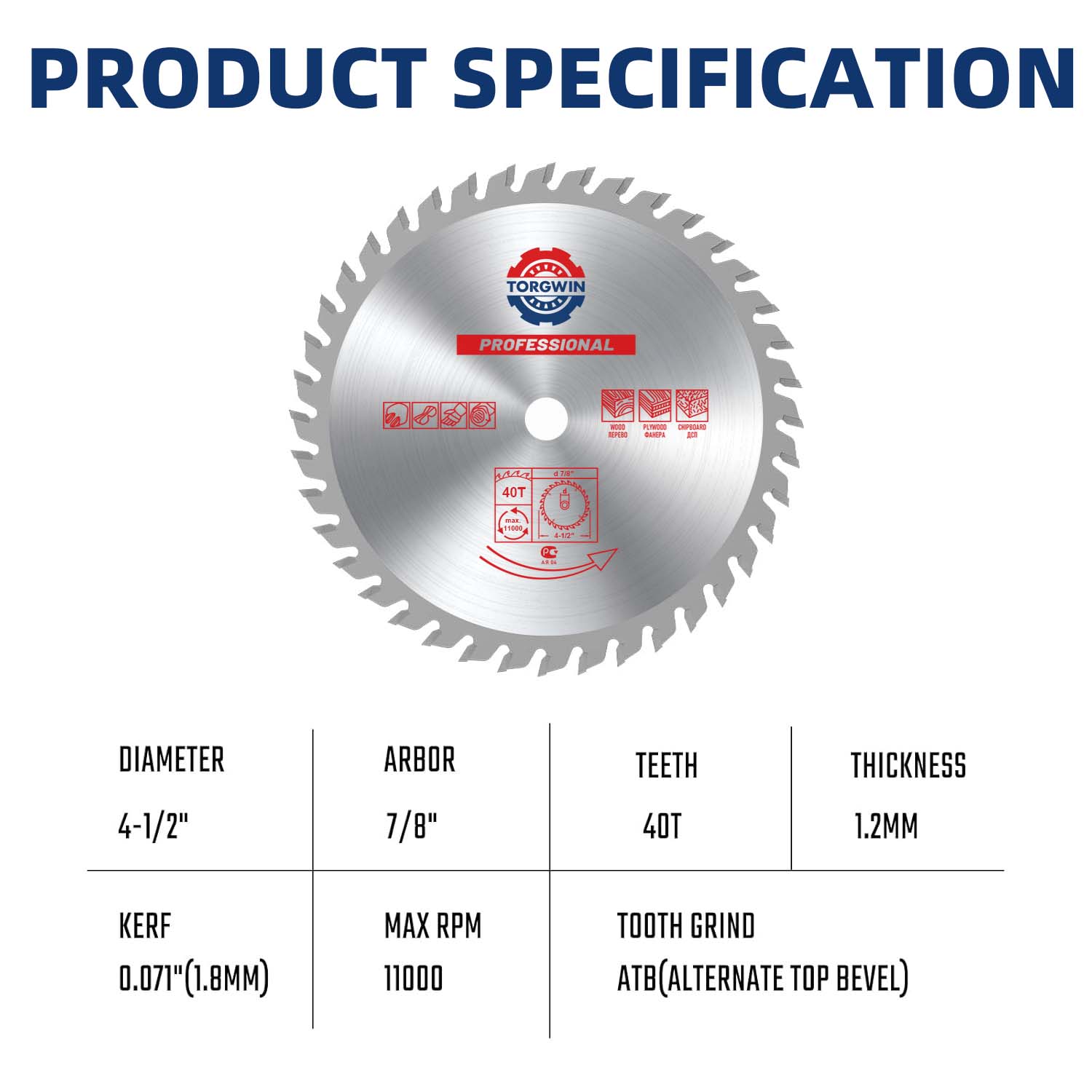 4 1/2 i 40T sirkulær sagblad karbid tippede tenner
